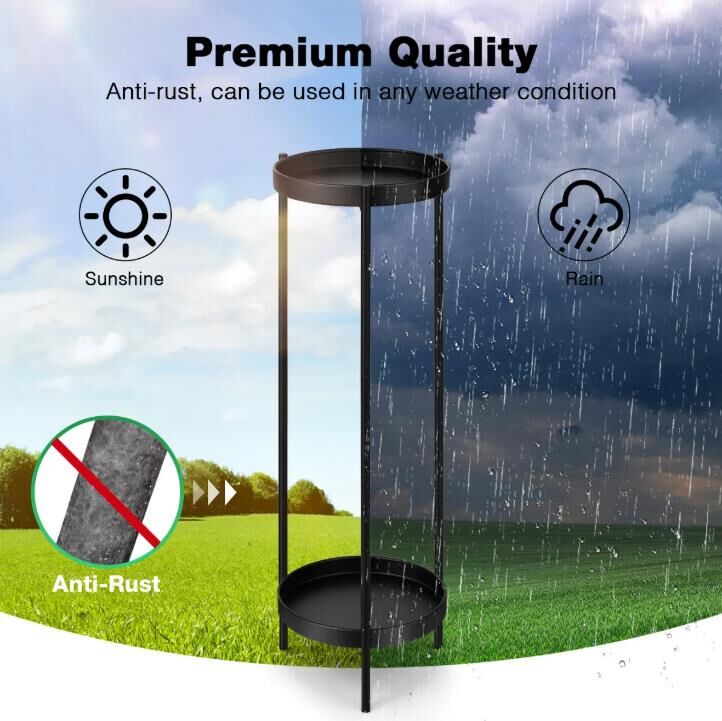Showcase your greenery and add a decorative element to your garden with this 80CM High Plant Stand Metal Flower Pots Shelf Planter Holder. Completed with a sturdy metal structure with a strong marble base, the flower pot stand has two plant shelves, each of which can accommodate a weight of up to 10kg. As it adopts a seamless welding design, the black plant stand will stand stably for enhanced security. Also, its oil paint is environmentally friendly, non-toxic and rustproof, ensuring the corner plant stand is ideal for indoor and outdoor use. Compact and lightweight, this plant pot holder creates a vertical space for your flowers and works well with a range of your decors.