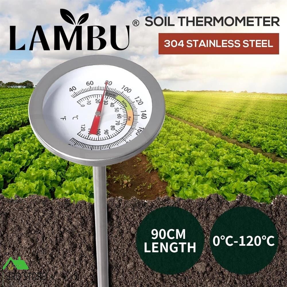 90cm Soil Thermometer Compost Garden Ground Stainless Steel 0-120deg Fertilizer
