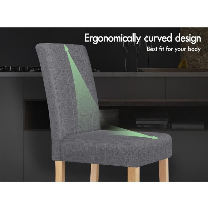 ALFORDSON 2x Dining Chair Cafe Kitchen Lounge Padded High-Back Wood Fabric Grey