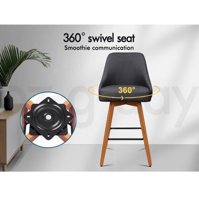 ALFORDSON 2x Swivel Bar Stools Ella Kitchen Dining Chair Wooden DARK GREY