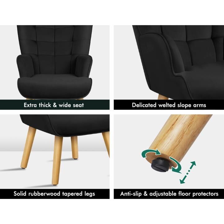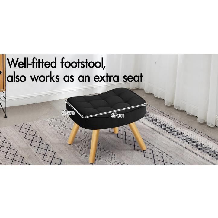 Not only with its iconic design and timeless appeal, this tub armchair is also cozy and practical. Upholstered in deluxe velvet fabric, the seat and backrest are richly padded with high-resilience foam, providing adequate support in the right places. It comes with a matching footstool for resting the feet on when sitting, which also can work as an extra seat. Combined with the solid construction, the armchair balances softness and durability for a delightful sitting experience, ideal for children and adults.
