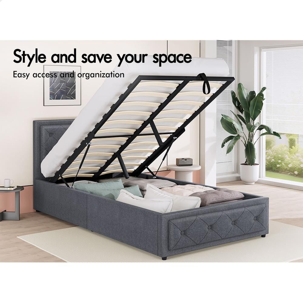ALFORDSON Bed Frame King Single Gas Lift Storage Mattress Base Fabric Grey