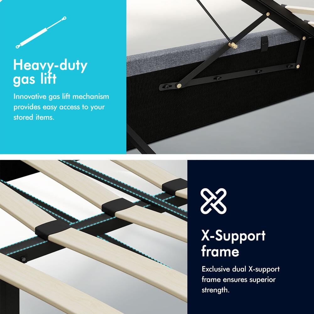 Quality counts - Constructed of durable wood slats and reinforced with exclusive dual X-support frame, this bed frame provides you with full sense of security. The heavy-duty gas lift mechanism allows you to effortlessly raise the mattress platform, providing easy access to the storage compartment.