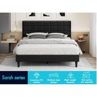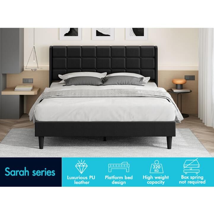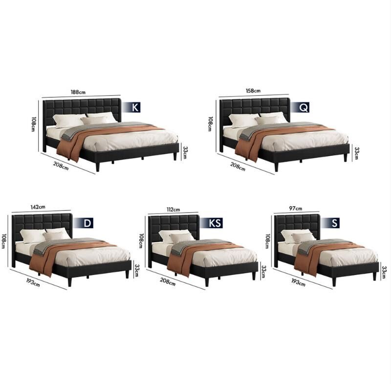 ALFORDSON Bed Frame King Size Upholstered Wingback Base Black Leather SARAH