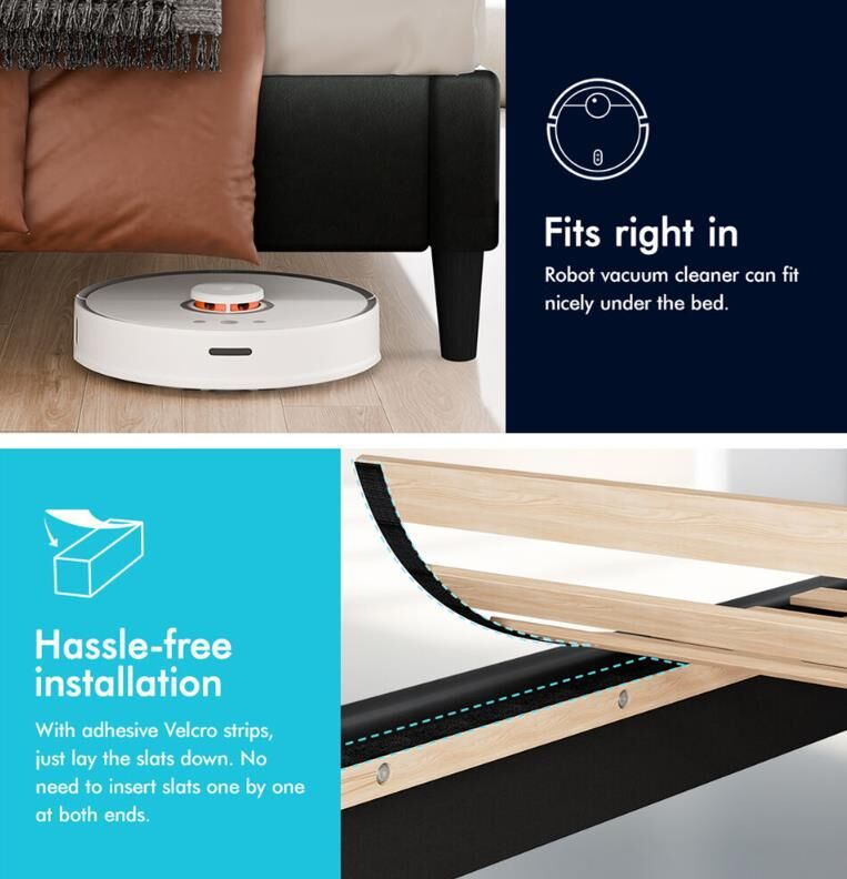 Keep it breezy - The mattress base will create a space where air can circulate freely. This helps you avoid any unwanted cold drafts and allows for better temperature regulation while you sleep on your mattress. The elevating design not only allows robot vacuum cleaner to go through under the bed, but also provides you with an additional storage space.
