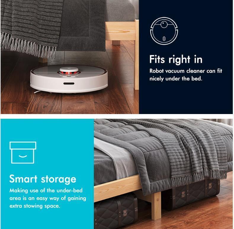 More storage place - The elevating design not only allows robot vacuum cleaner to go through under the bed, but also provides you with an additional storage space. We also have matching trundle drawers in store for sale, so you can keep clothes, bedding, linen and more within reach.