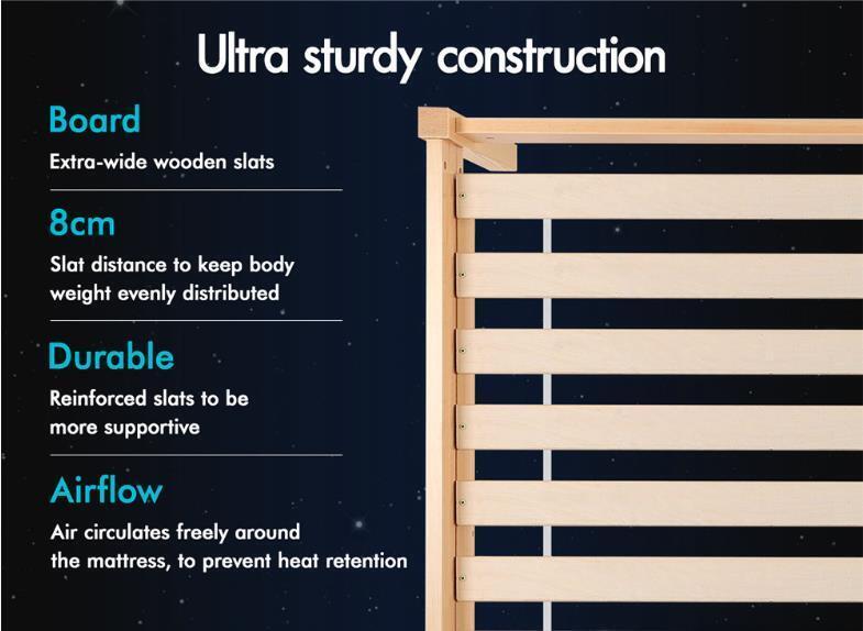 Keep it breezy - 8cm slat distance will create a space where air can circulate. This helps you avoid any unwanted cold drafts and allows for better temperature regulation while you sleep on your mattress.