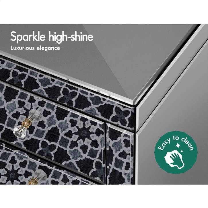 As you may or may not know, most people prefer to have two bedside tables in the bedroom because they help achieve symmetry in the design and increases storage space. Moreover, these unique mirrored tables can be used as fancy cabinets or luxury side tables. Its clean-cut design will fit perfectly in multiple interior styles, in the meantime, increase the brightness of a room. Being functional yet stylish, you will definitely love our mirrored bedside table.