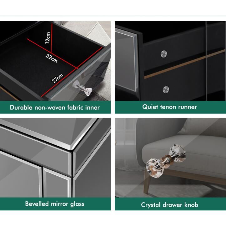 Finely crafted with smooth and bevelled mirrored glass, as well as superior E1 grade MDF board, this bedside table is designed to be highly durable. It is also easy to maintain and clean. A protective packaging is apllied to the bedside table surface to prevent scratches and damaged during shipping.