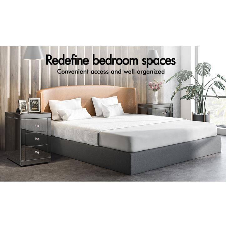 ALFORDSON Bedside Table Mirrored Cabinet Nightstand Side End Table 3 Drawers