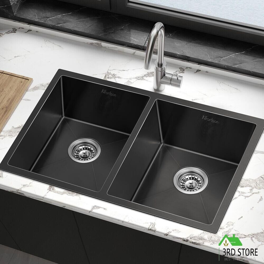 ALFORDSON Kitchen Sink Stainless Steel Drop in Flush Under Mount 770X450MM Black