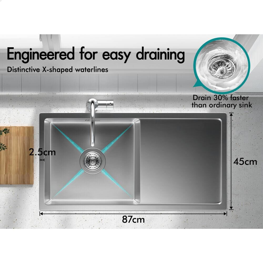 ALFORDSON Kitchen Sink Stainless Steel Drop in Flush Under Mount Basin 870X450MM
