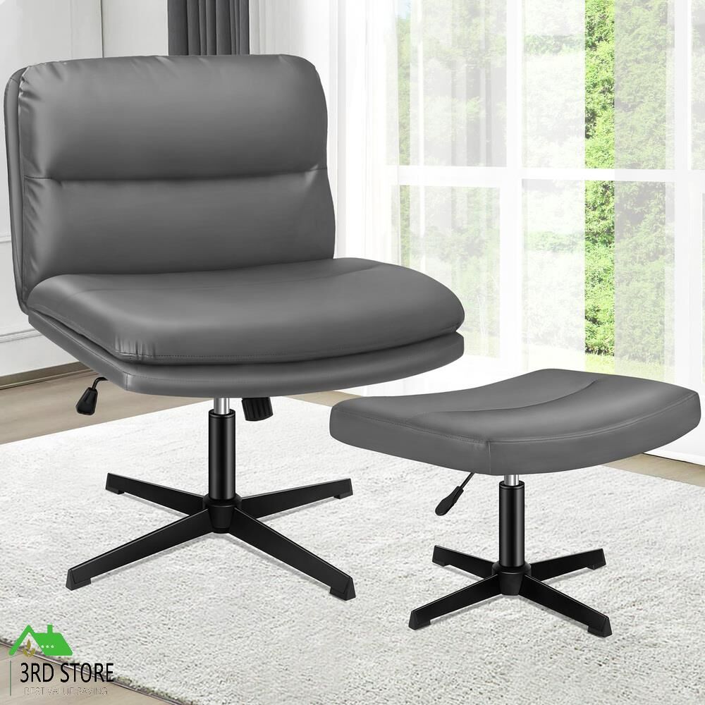 ALFORDSON Office Chair Computer Cross-legged Seat Work Ottoman PU Leather Grey
