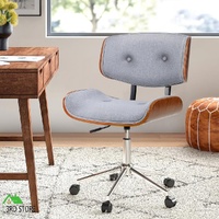 ALFORDSON Wooden Office Chair Computer Chairs Home Seat Linen Fabric Grey