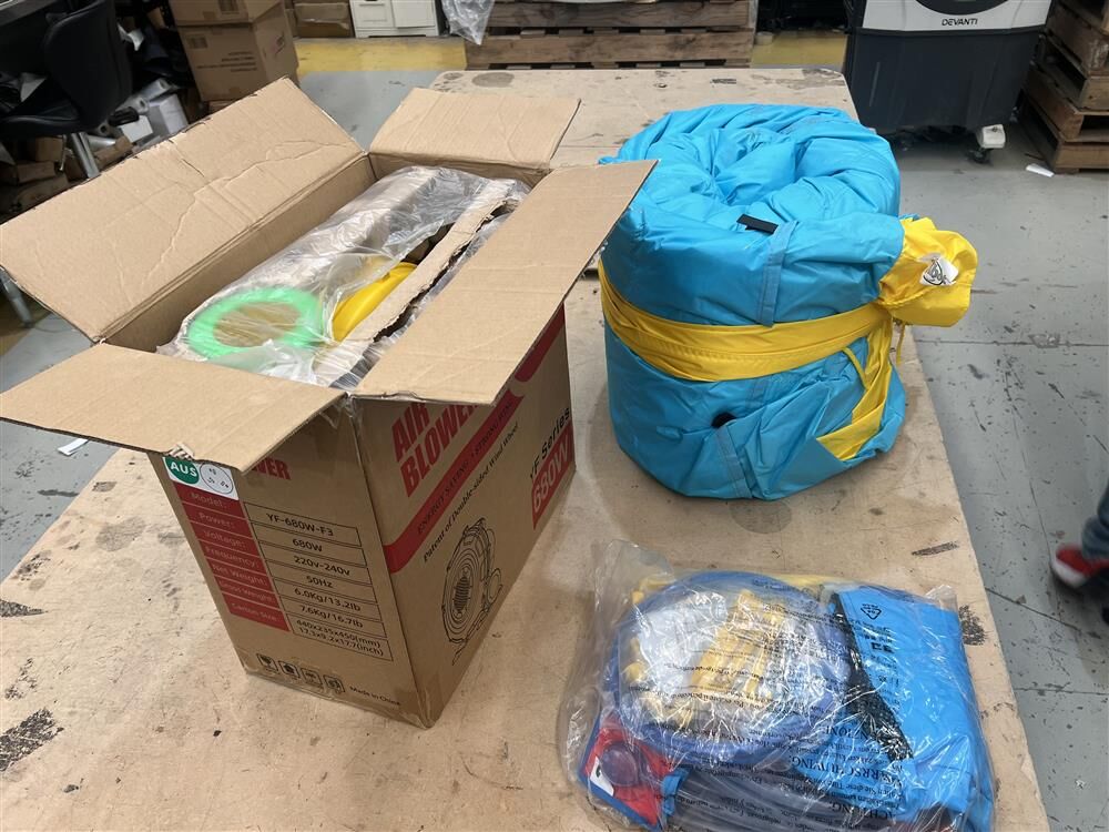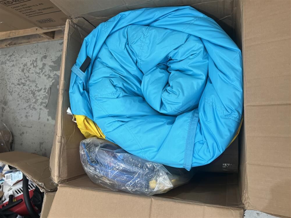 1*Inflatable water park 1*Blower 1*Carrying bag 4*Repair patches 8*Water park stakes 2*Blower stakes 1*Hose assembly kit 1*Inflatable football 1*User guide |