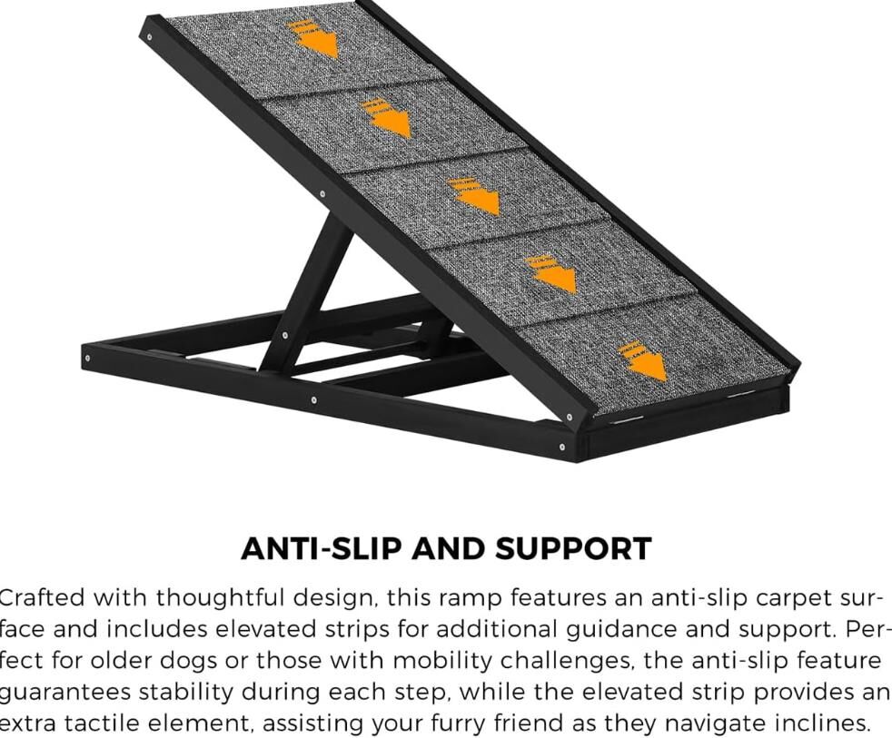 Looking for a convenient and safe way to help your furry friend climb up to their favorite spots? Our Alopet pet ramp is the perfect solution!Our pet ramp is made with high-quality materials that provide a sturdy and stable surface for your pet to climb up and down. The ramp features a slip-resistant surface that ensures your pet can easily and safely navigate their way up and down without slipping or sliding.