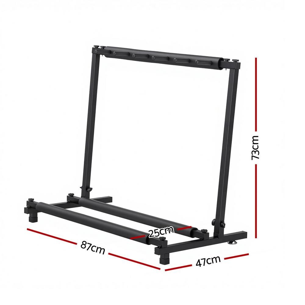 This Alpha foldable guitar rack is a must-have for any musician. Designed to hold up to 5 guitars with soft foam padding to protect your instruments from scratches. Its space-saving design makes it an ideal guitar holder for your studio or stage. The stand is suitable for various guitar types including acoustic and electric. Set it up effortlessly with adjustable feet for a secure display.