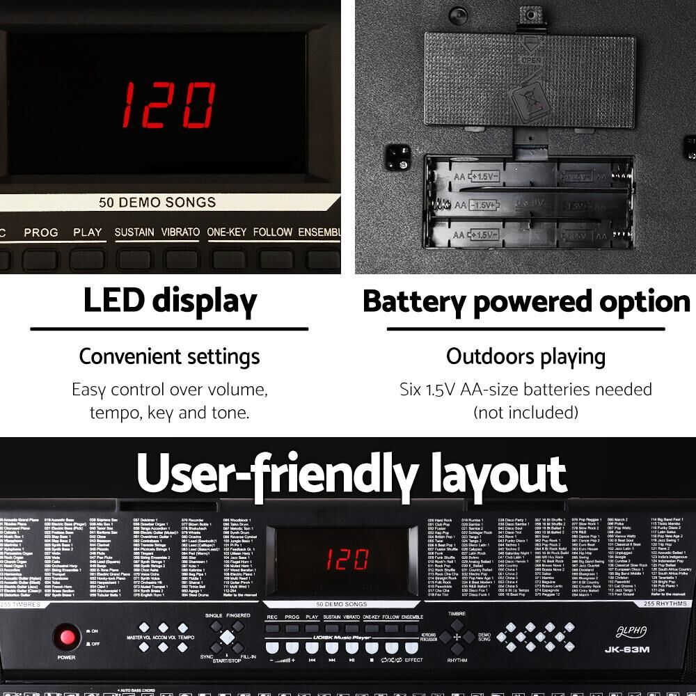 With so much going for the Alpha 61-key Portable Keyboard EK-63, it will surely bring out the creative melody maker in you.