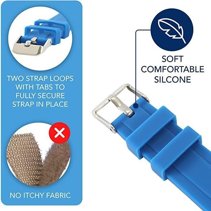 - QUALITY: Soft Blue silicone watch strap. Stainless steel back. Mineral Glass for the best clarity.