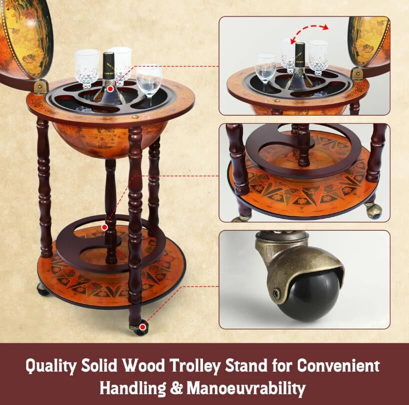 - Fancy Yourself a World-class Host with This Deluxe Handcrafted Mini Globe Bar Cabinet Wine Rack Drinks Trolley