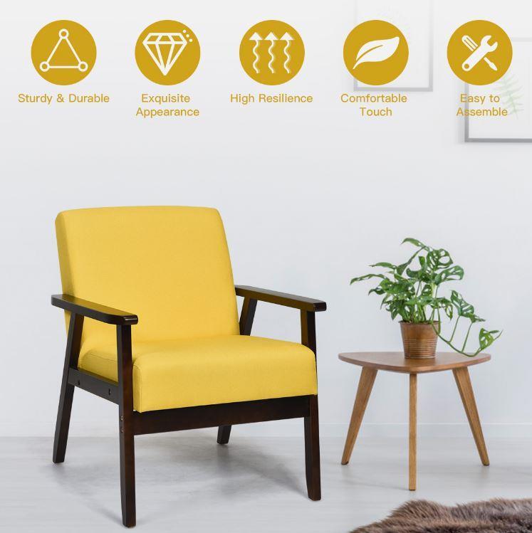 Selected Rubber Wood: Made of a natural rubber wood frame, this accent chair is firm and wear-resistant for a long service time. It has no burr and no smell for safe use. Thanks to premium material and sturdy structure, it can withstand up to 330 lbs without wobbling.