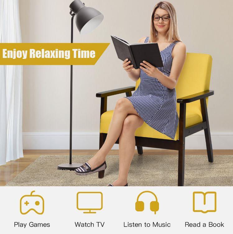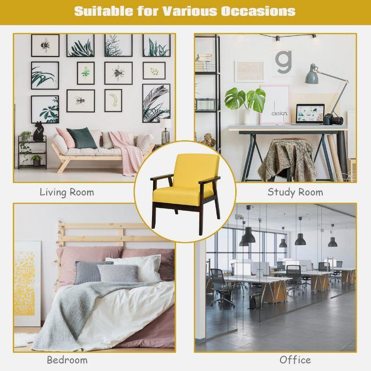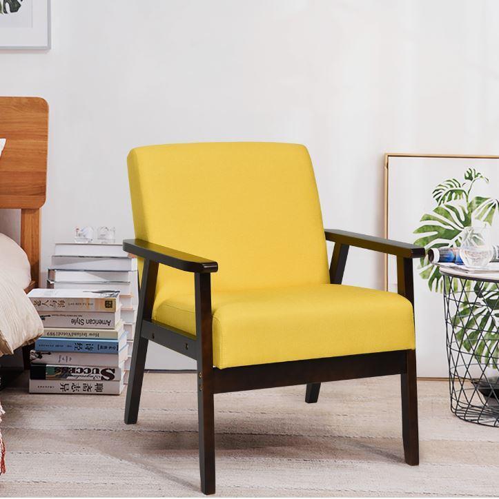 Armchair Accent Lounge Chair Fabric Upholstered Seat Rubber Wood Frame