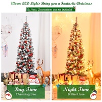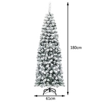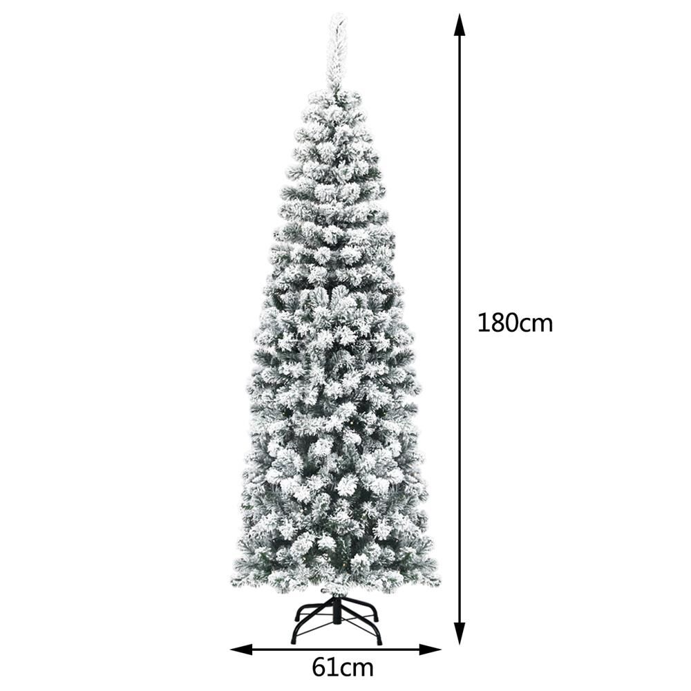 This 1.4/1.8/2.27m snow flocked pre-lit Christmas tree has 242/500/641 branch tips, featuring a realistic appearance, and suits any room in your home. All the needles are made of premium PVC material which makes the tree quite real and safe to use. 150/250/350 warm white LED lights can light up your room and bring you a welcome feeling. The reinforced iron base is strong enough to support the whole tree and keeps it stable and balanced. You can fold it when not in use. You can fluff and assemble the tree effortlessly with its hinged construction. For further use, you can take the tree apart into 2/3/3 sections and store it without much space occupied. BulletPoint Flocked Design and Perfect Decoration: This 1.4/1.8/2.27m Christmas tree features a realistic appearance. The heavy snow flocked branches will take you into a wintry world and as an attractive decoration during holidays. It will surely make your home full of festival flavor so that you can enjoy a wonderful Christmas with your family! Pre-lit or Unlit Christmas Tree: You can turn all the lights on and let them light up any room for a holiday atmosphere and 150/250/350 warm white lights will create a welcome feeling in your home. Besides, you can also choose not to use the LED lights and keep it a classic and traditional pencil Christmas tree. High Quality PVC Material: The leaves are made of environmentally friendly and durable PVC material which features no harm to your body and make the whole tree look fuller and more lifelike. All the 242/500/641 branch tips are strong enough to hang nuts, balls and other ornaments to make the tree much prettier. X-shaped Metal Stand Included: The four-leg metal base ensures that this artificial pencil tree will remain stable and keeps it high and upright all season. When not in use, the base is easy to disassemble and can be folded effortlessly into a compact and space-saving size. Simple Setup and Easy Storage: The hinged structure makes our holiday pencil tree easy to fluff and assemble with no tools and less time required. You can divide into 2/3/3 sections and folded metal base for easy storage, which can save space and is convenient for further use. Feature Perfect festival decoration with attractive appearance and suitable for diverse occasions Equipped with 150/250/350 LED lights creating a warm atmosphere for you home All lights and the adapter is SAA-certified Heavy snow flocked design makes your home full of wintry flavor Constructed with 242/500/641 branch tips which contributes to a full lifelike tree Compact pencil size without taking up much space Premium PVC material features great durability for long-term use Solid metal base keeps the tree stable and upright and is easy to fold Plenty of space for hanging beautiful ornaments as you like Hinged structure makes it easy to fluff and set up Specifications: Color: As picture shows Material: PVC, metal Net Weight: 2.5/4.3/6kg Height:1.4/1.8/2.27m Base: 55/60/67cm Number of Tips: 242/500/641 Number of LED Lights: 150/250/350 Voltage: 220-240V, 50-60Hz Package includes: 1 x Flocked Christmas Tree 1 x User’s Manual