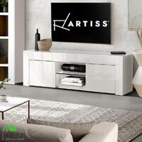 Artiss 130cm TV Cabinet Entertainment Unit Stand High Gloss Storage Shelf White