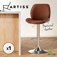 Artiss 1X Bar Stool Bentwood Swivel Adjustable Kitchen Dining Counter Stool Leather Brown