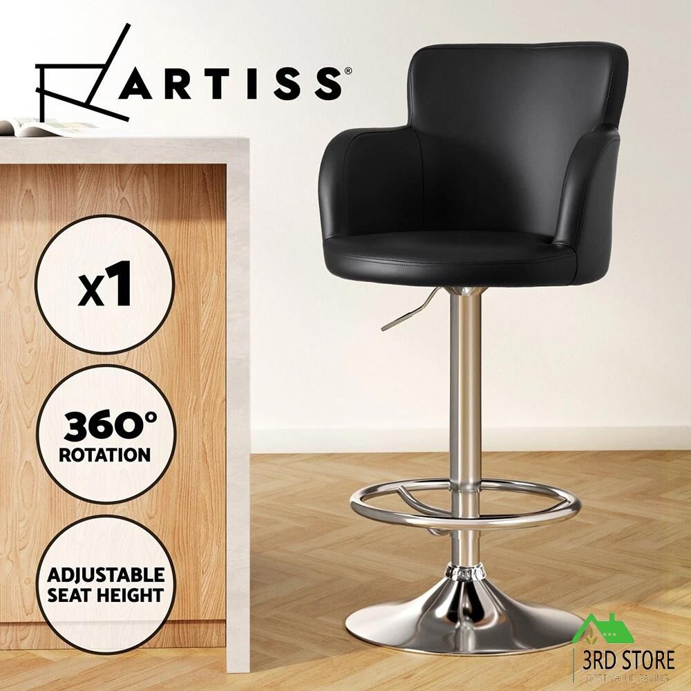 Artiss 1x Leather Bar Stools Swivel Adjustable Gas Lift PU Counter Chairs Black