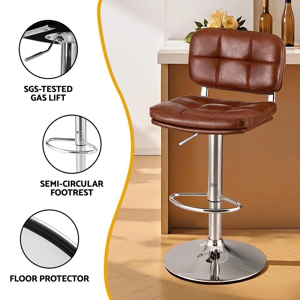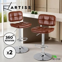 Artiss 2x Bar Stools Kitchen Swivel Gas Lift Counter Chair Tuft PU Leather Brown