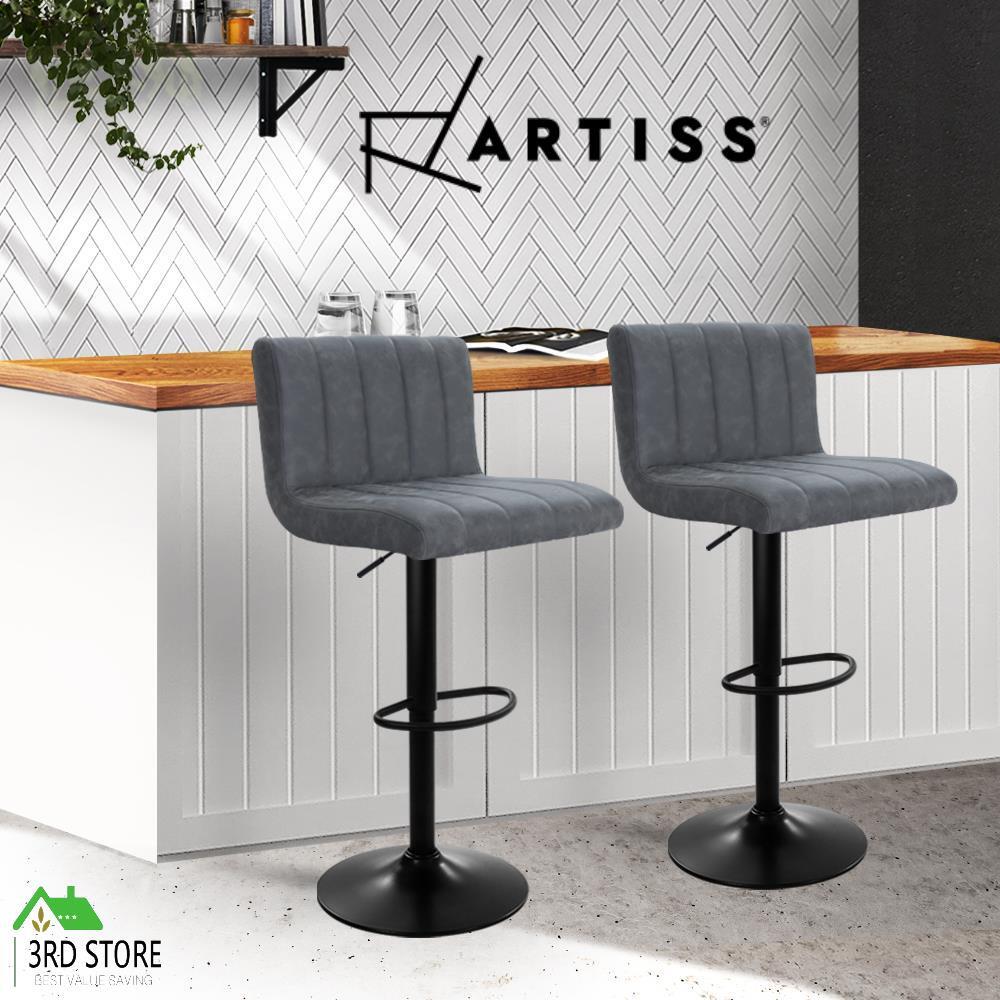 Artiss 2x Kitchen Bar Stools Swivel Vintage Bar Stool Leather Gas Lift Chairs