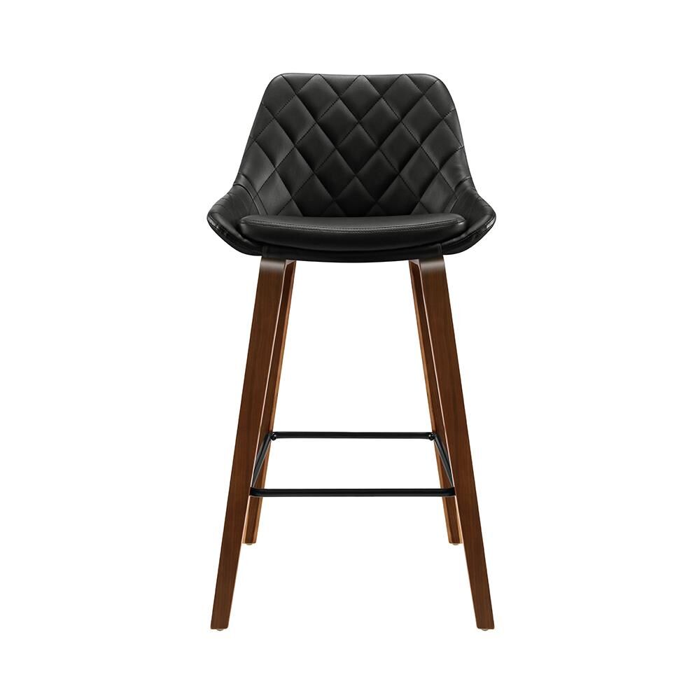 Wood, metal and PU leather together make a heavenly match. Fantastically crafted with solid wood, these bar stools feature a generous puckered PU leather seat and backrest that feel comfortably smooth and look classy. The contoured backrest provides back support while the anti-slip rubber pads at the bottom of the legs remain firm and stop your floor from getting scratched. Lastly, the metal rectangular footrest lets you perch in style.