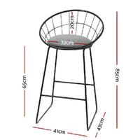 Artiss 2x Nordic Bar Stools Metallic Bar Stool Kitchen Chairs Fabric Grey Black