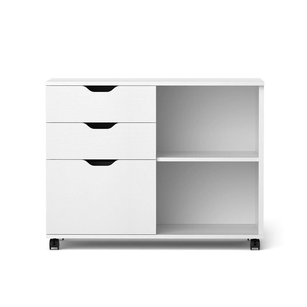 Artiss 3 Drawer Mobile Filing Cabinet Printer Stand Cabinet Home Office Storage White