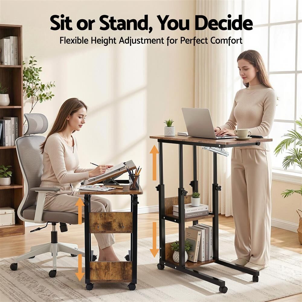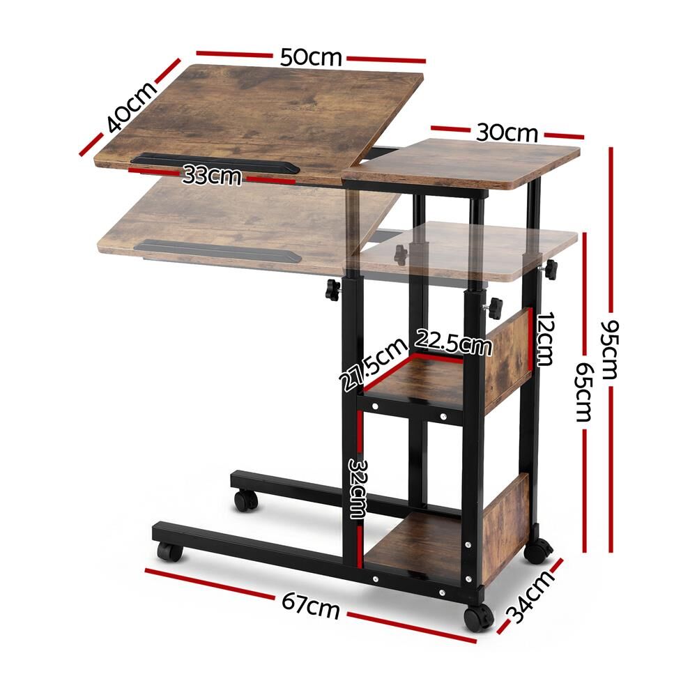 Transform your space with the Artiss adjustable laptop desk. This mobile workstation table serves as a handy overbed C shape desk. Featuring a tiltable sofa side table design, it offers flexible heights and storage. A versatile home office desk wheels solution in rustic brown.
