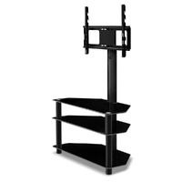Comprising three tiers of strong tempered glass shelves and a solid aluminium frame, the TV Floor Stand is perfect for mounting any TV screen between 32" and 60". It is also compatible with various VESA measurements. The integrated design simply looks stunning, especially with its sleek black finish. Better still, the height of the TV can be adjusted from 120.5 cm to 132.5cm to suit your desired comfort sight line. And you can also swivel the TV screen up to 35 degree on either side for preferred viewing spots. Not least, there is ample space for your home theatre system, DVD player, TV set box and various other entertainment paraphernalia with the three spacious shelves.