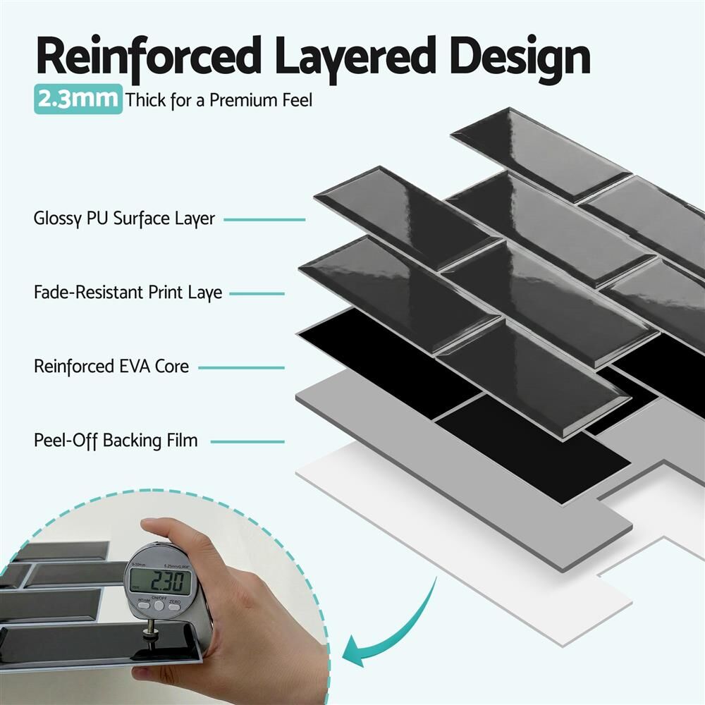 Transform your living space instantly with our 3D Peel and Stick Premium Thicker Tiles. Designed for those who seek a high-end look without the cost or mess of traditional renovation, these subway tiles provide a professional finish in minutes. Whether you are a renter personalizing your apartment, a homeowner tackling a weekend DIY project, or a traveler upgrading your RV or camper kitchen, our upgraded 2.3mm tiles offer the perfect balance of durability, lightweight design, and modern style.