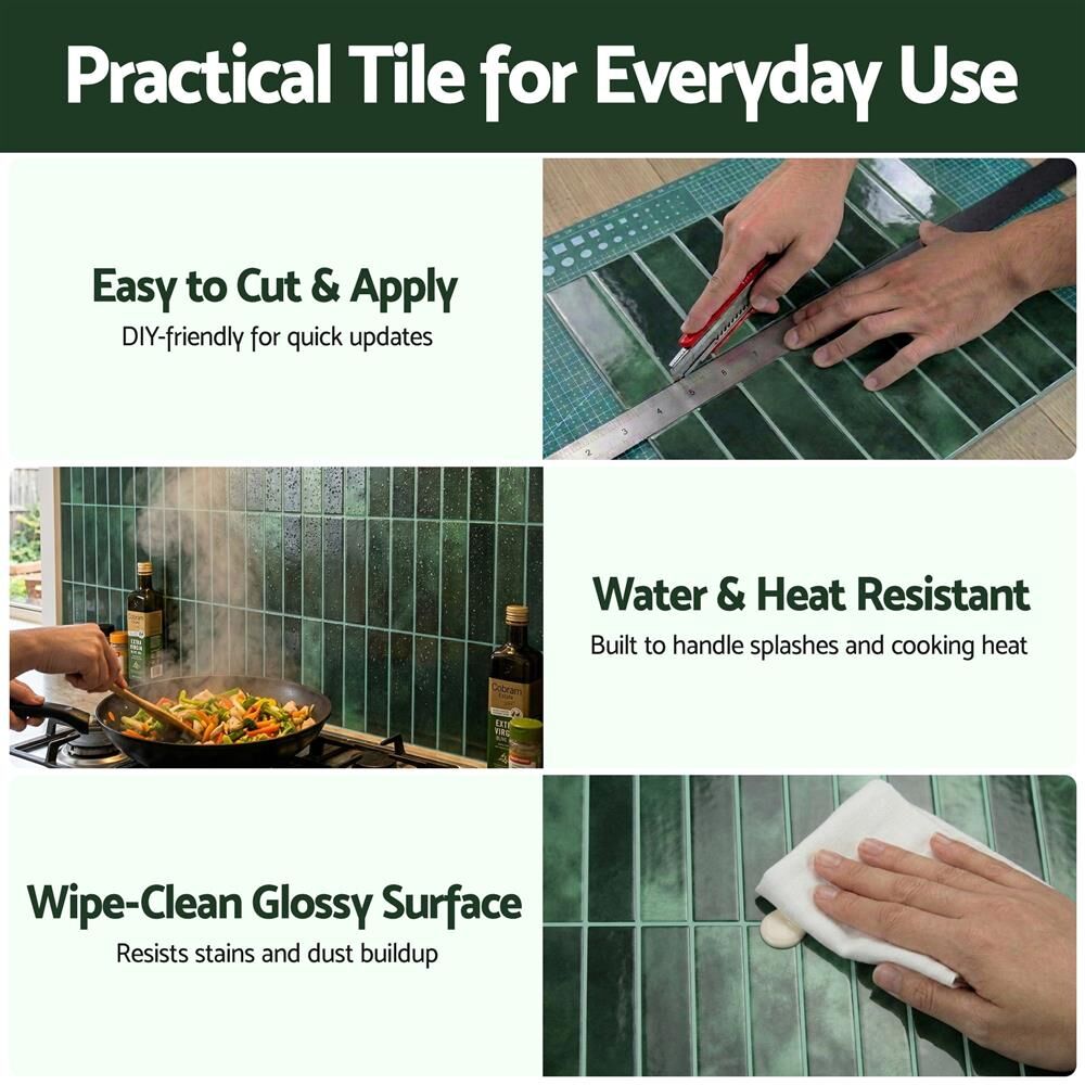 Transform your living space instantly with our 3D Peel and Stick Premium Thicker Tiles. Designed for those who seek a high-end look without the cost or mess of traditional renovation, these green LinearGrid subway tiles provide a warm, modern, and professional finish in minutes. Whether you are a renter personalizing your apartment, a homeowner tackling a weekend DIY project, or a traveler upgrading your RV or camper kitchen, our upgraded 2.3mm tiles offer the perfect balance of durability, lightweight design, and unique aesthetic style.