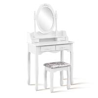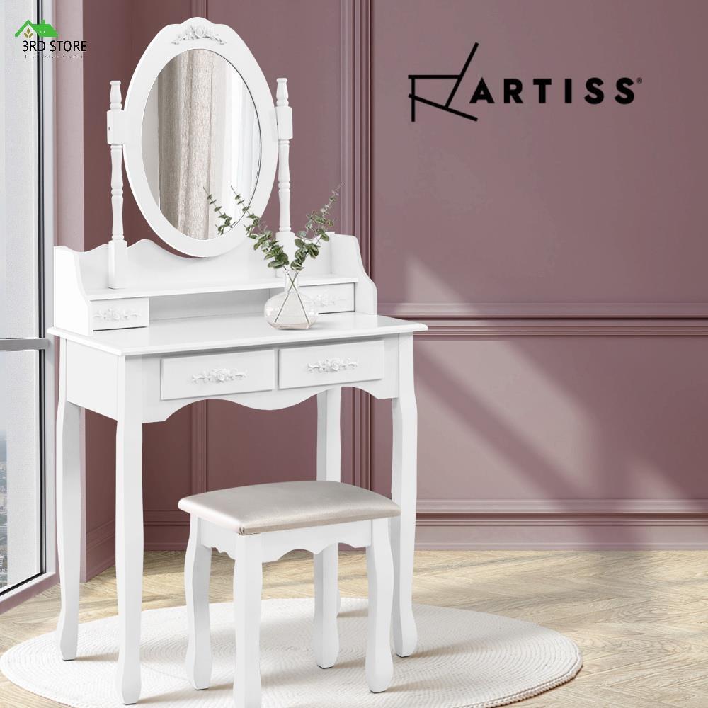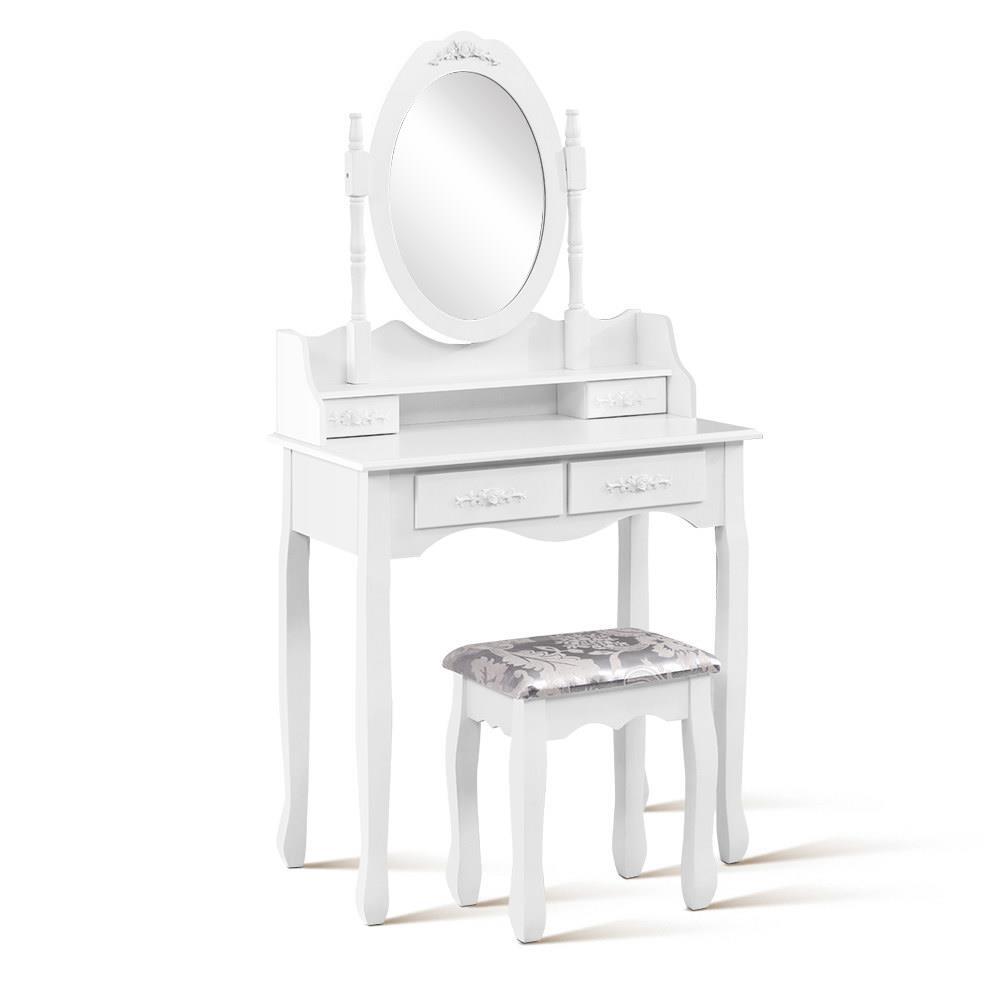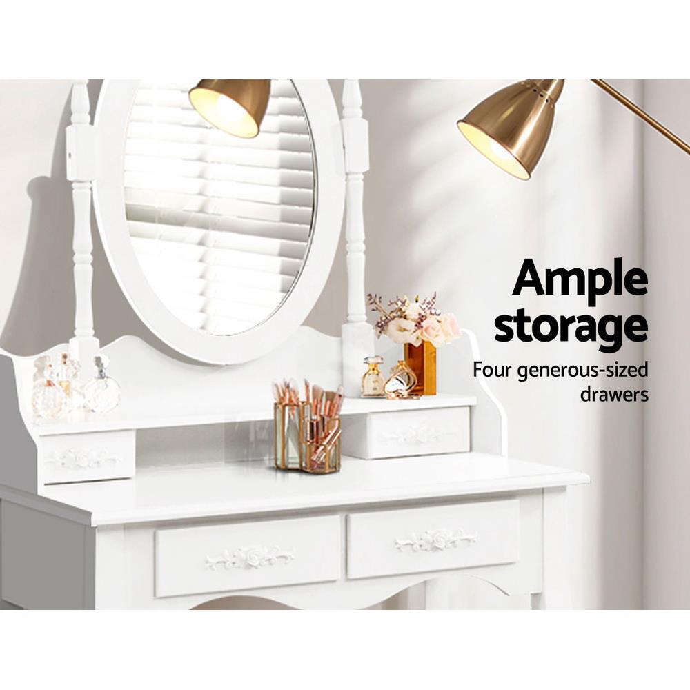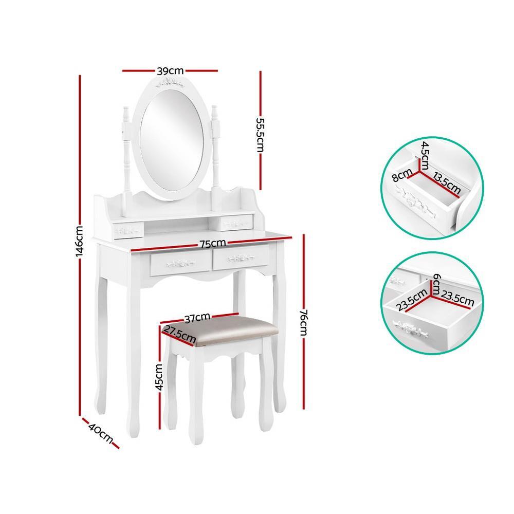 Artiss Dressing Table Stool Makeup Mirror Jewellery Cabinet 4 Drawers White
