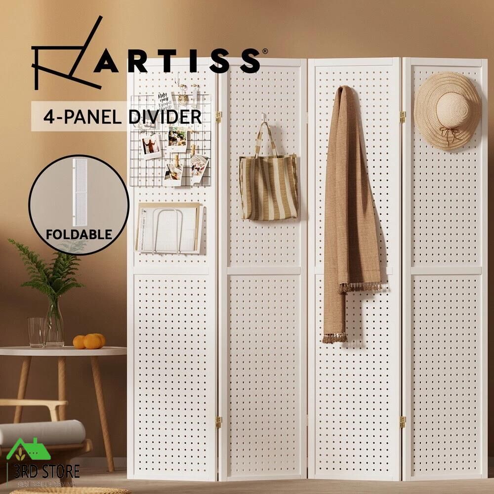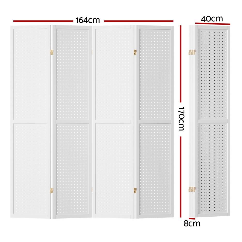 Artiss 4 Panel Room Divider Screen Partition Privacy Pegboard Stand Hollow White