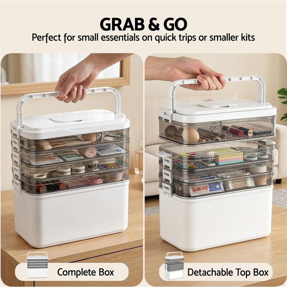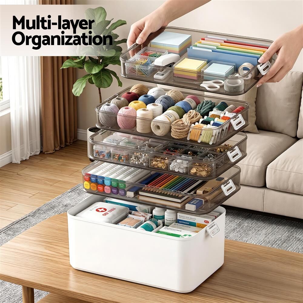 Organize your space with our 5-Tier Clear Plastic Storage Box. Perfect for multi-layer organization, this versatile storage container neatly holds medicine, cosmetics, craft supplies, and fishing tackle. Crafted from durable PP plastic (30x16.5x31cm), it features a smart detachable design so you can customize your layers. A secure sealing buckle keeps items safe, while the easy-grab handle ensures quick portability. Designed with smooth edges for everyday safety. Ideal as a tidy organizer or stackable storage bin for your home or office. Simple assembly required.