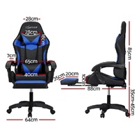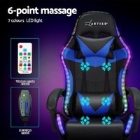 Artiss 6 Point Massage Gaming Office Chair 7 LED Footrest Blue