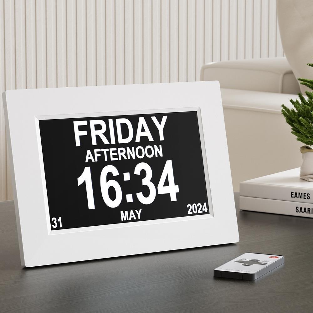 Simplify your mornings and evenings with this versatile Digital Day Clock. Featuring a large, clear, and eye-catching 8-inch LCD display, it can be positioned on your desk or mounted on the wall for optimal visibility. The auto-dimming function adjusts brightness automatically for comfortable viewing throughout the day and night.