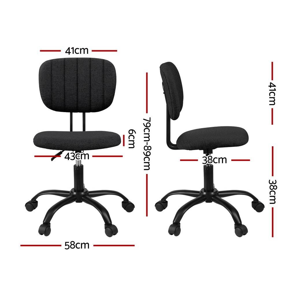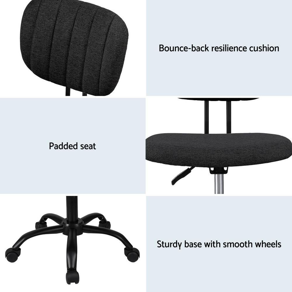 Artiss Armless Office Chair Swivel Home Office Desk Chair Fabric, Black
