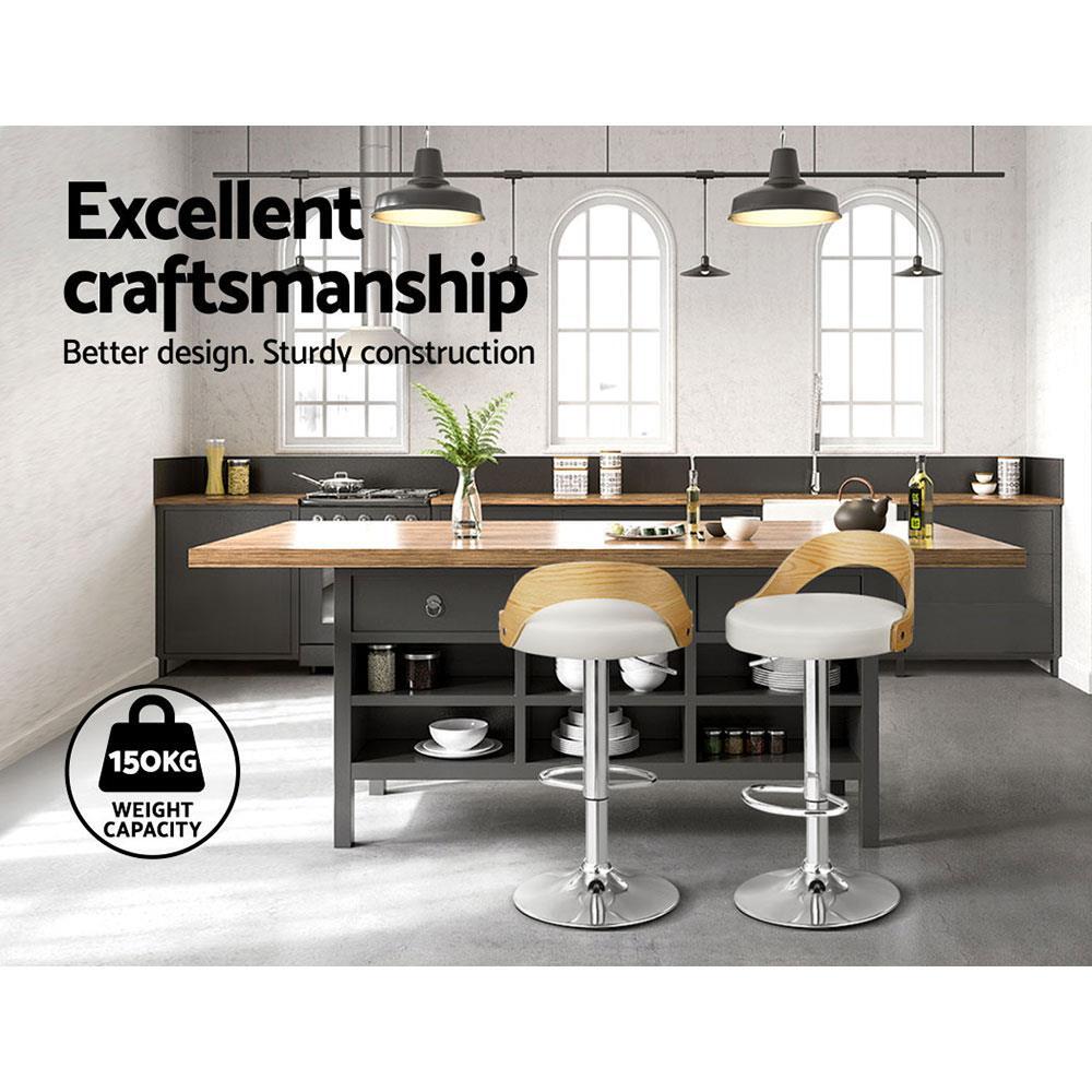 Artiss Bar Stools Kitchen Gas Lift Wooden Stool Metal Barstools White Swivel