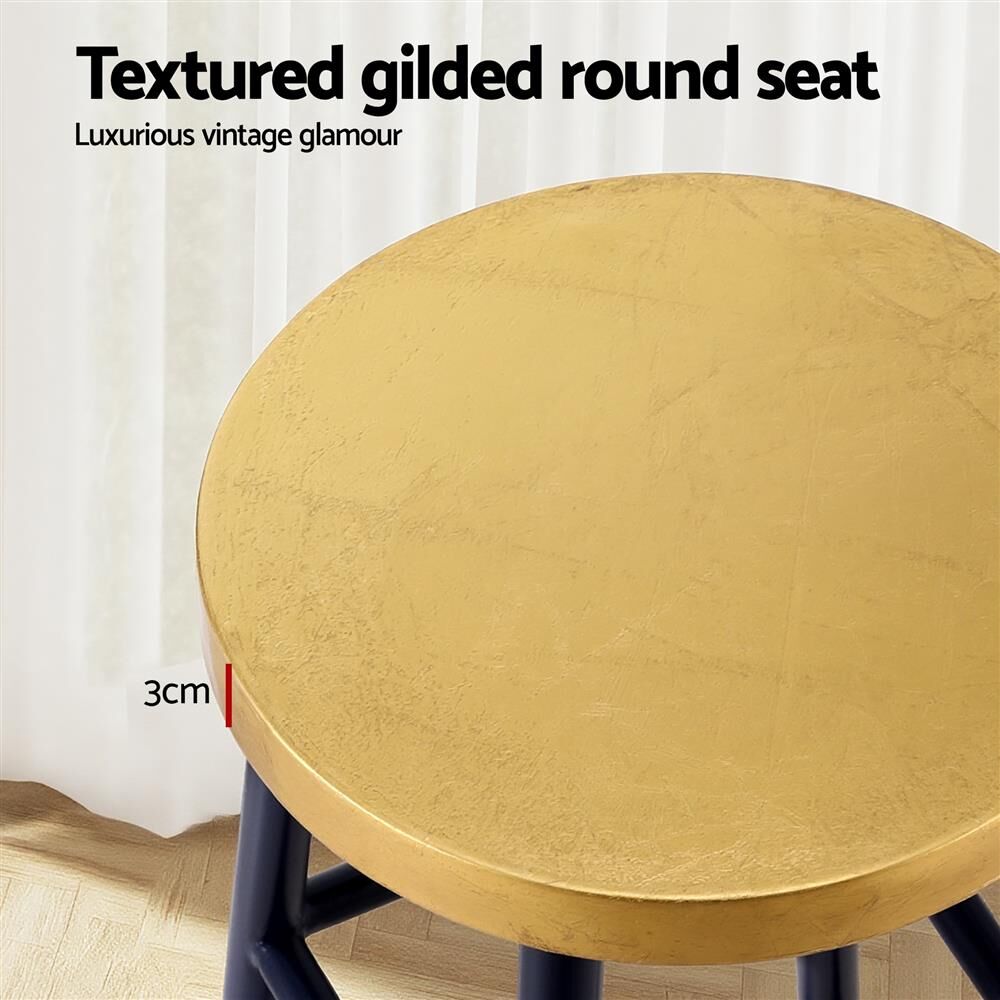 Upgrade your seating with this stylish Artiss bar stools, perfect for any space. Featuring a modern two-tone design with a textured gilded round seat, these stools bring elegance and functionality to your home. Built with sturdy metal construction, each stool supports up to 120kg, ensuring durability and strength. The powder-coated footrest enhances comfort, while anti-slip floor protectors keep your floors safe and add stability. Easy to assemble and suitable for kitchens, bars, or dining areas, these stools are a versatile addition to your space. Don't miss out—add this chic set of bar stools to your home today!