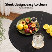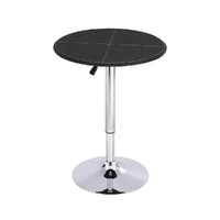 Artiss Bar Table Round Swivel Height Adjustable 62cm Modern PVC Leather Black