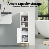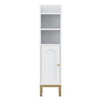 Elevate your bathroom organization with this ultra-slim storage cabinet, expertly crafted to maximize space in narrow Australian homes. Measuring just 20x20x84cm, its space-saving profile tucks seamlessly beside toilets or vanities while the elegant arched door and gold-toned legs add boutique charm. Enjoy versatile 3-tier storage: display potted plants on the open top shelf, adjust the middle compartment for toiletries of any height, and conceal spare toilet rolls in the enclosed bottom cabinet. Built from MDF with reinforced metal legs and an included anti-tip safety kit. Effortless tool-free assembly makes this durable, family-friendly organizer perfect for rentals or compact spaces��transforming clutter into curated style with uncompromising functionality.
