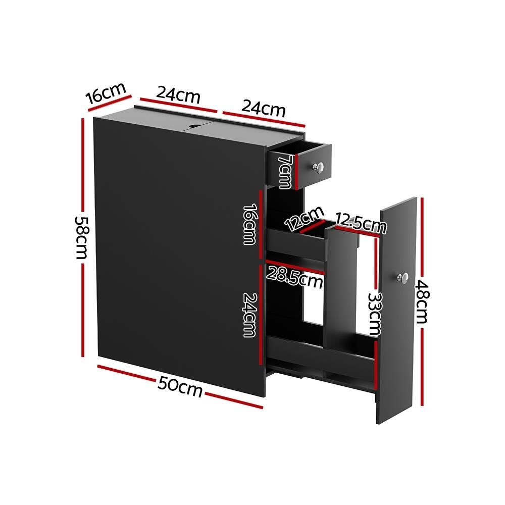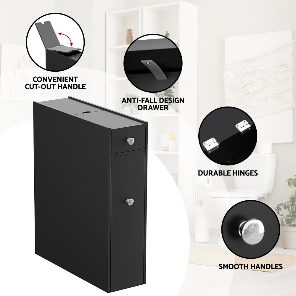 Artiss Bathroom Storage Cabinet Toilet Slim Tissue Box Caddy Holder Side Wooden Black